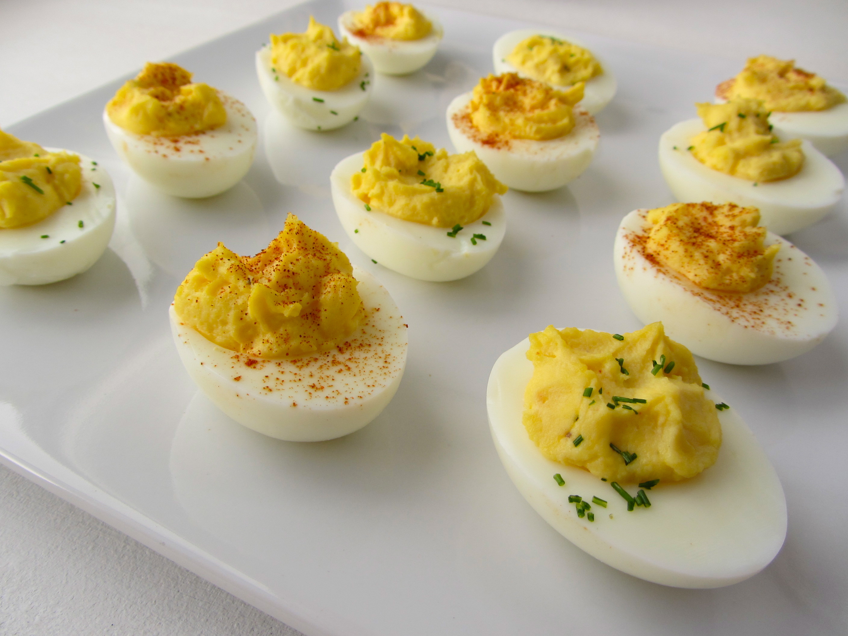 4. Spoon yolk mixture into the egg whites, then dust with paprika or garnish with the chopped chives. Serve immediately or refrigerate until ready to serve.