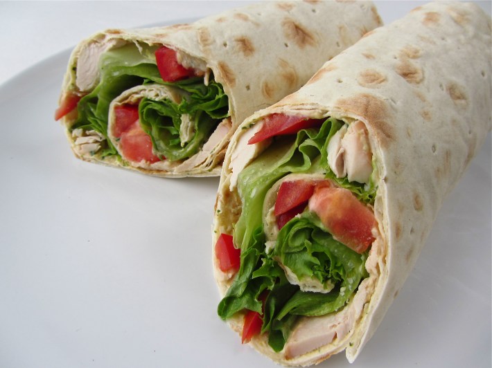 * We all know about hummus; lavash bread also hails from the Middle East. It is fairly available in most markets these days. If you can’t find it, a large tortilla works too, though the flat bread has a better texture and flexibility for sandwich wrapping.