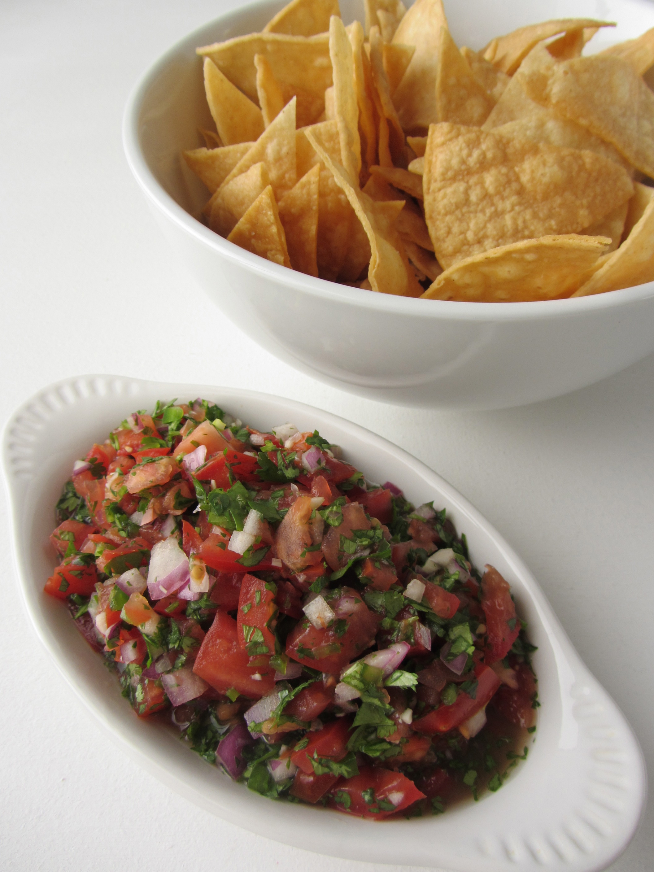 Chips and salsa: it is a kitchen staple nowadays. Whether a quick snack, or part of a party table spread, this Mexican combo has become a standard in the American edible lexicon. I recently started making my own tortilla chips and salsa, which surprisingly was not as difficult as I imagined. Well, it is a bit more time consuming than opening a bag and a jar, but the extra work is completely worth it. My favorite salsa is Pico de Gallo, also called Salsa Fresca. I like the fresh chunkiness of it, as compared to the liquid sauciness of a traditional salsa. Did you know, the name Pico de Gallo translates to “Rooster’s Beak”? Because of its chopped composition, this condiment originally was eaten using the thumb and forefinger, and the action of picking up this diced salsa resembled a pecking rooster.