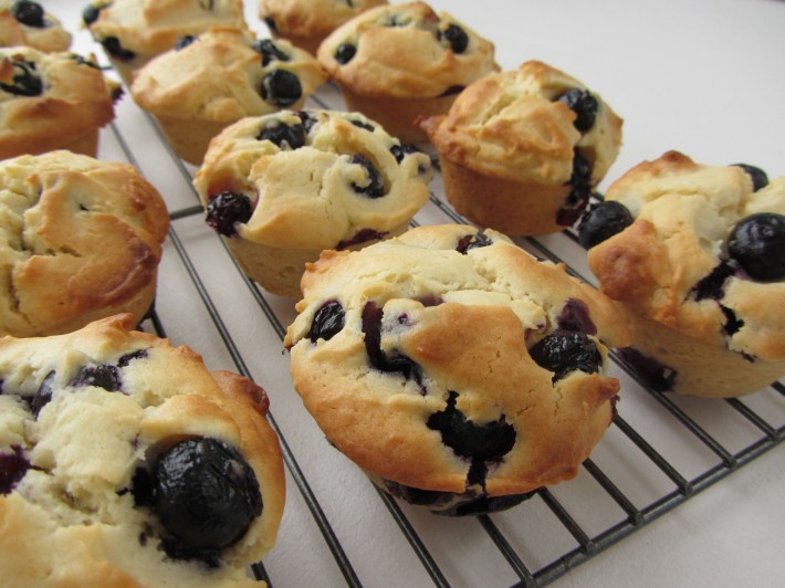 These muffins came about with a good friend of mine, who recently became a mother. Well, maybe not recently, seeing as how her daughter is a year and a half now. We got together to bake baby’s first cake, a blueberry yogurt cake, which ended up denser with a bread-like texture. It also took longer to bake than anticipated because of the density and while the yogurt made the cake very moist, it was still a bit too wet in the center after the sides had finished baking. But we had a great time showing the little one how to measure and helping her develop motor-skills, along with introducing the concept of patience: she had to wait for the cake to finish baking in order to reap the reward of eating it. And of course, later on I asked myself, how could I improve on the recipe? Experiment and re-bake, naturally! After some ingredient ratio adjustments and a few other poor attempts at baking, I realized that “cake” was a misnomer- it actually wanted to be made as muffins. The smaller size allows the batter to cook evenly and quicker, which makes for successful baking each time. And in the case of mommy and baby, more time bonding instead of lamenting over failed cakes.