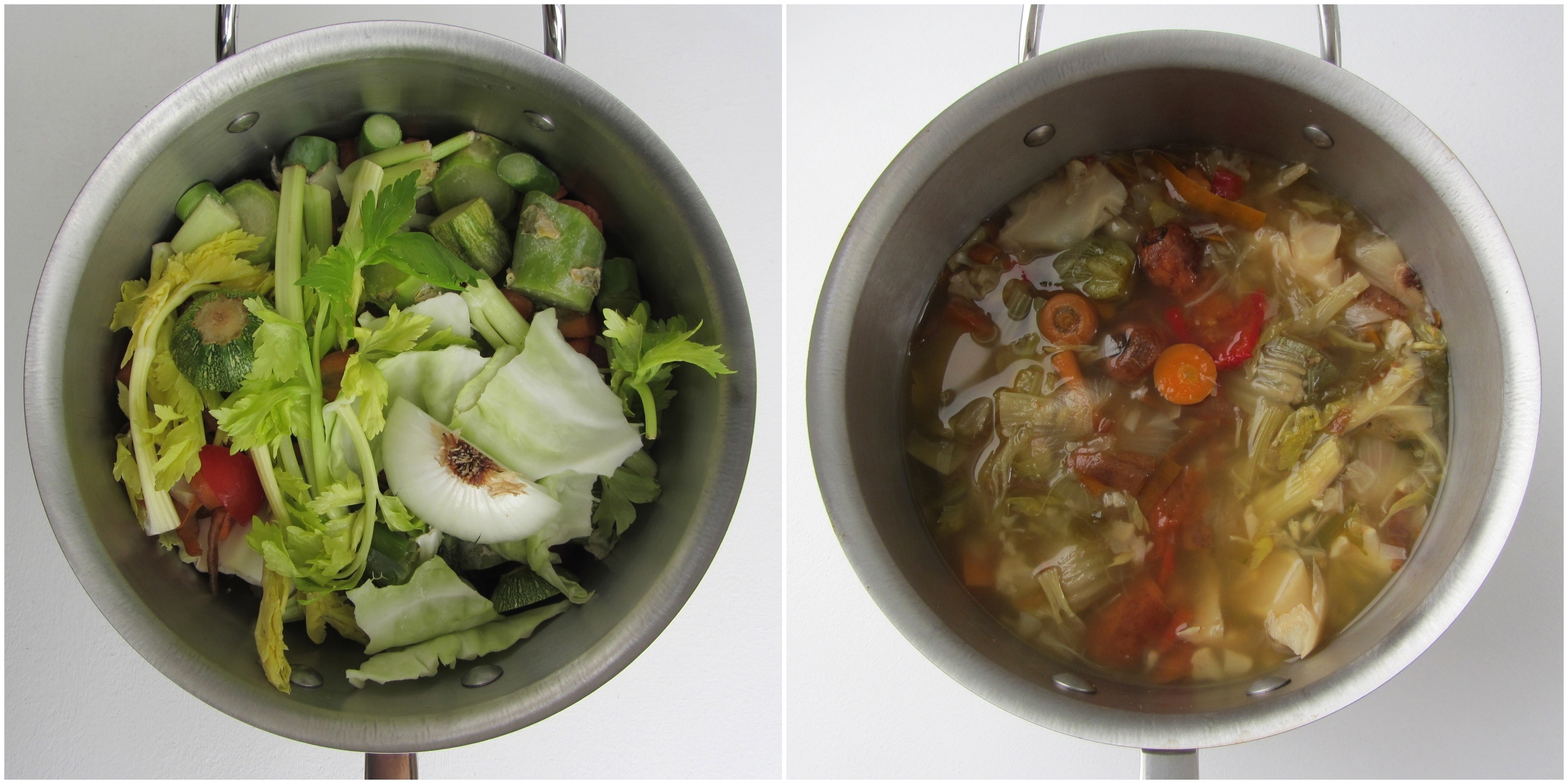 In an effort to become even more resourceful when it comes to utilizing anything and everything that crosses my cutting board, I’ve gotten into the habit of making my own stock. Rather than tossing them into the compost bin, I’ve got into the habit of saving all the raw carrot tops, onions skins, celery bits, bell pepper stems, asparagus ends, tomato cores, and etcetera, keeping them in the freezer until a sizable amount has collected. All that’s left then to do is boil it away and voilà: homemade vegetable stock!