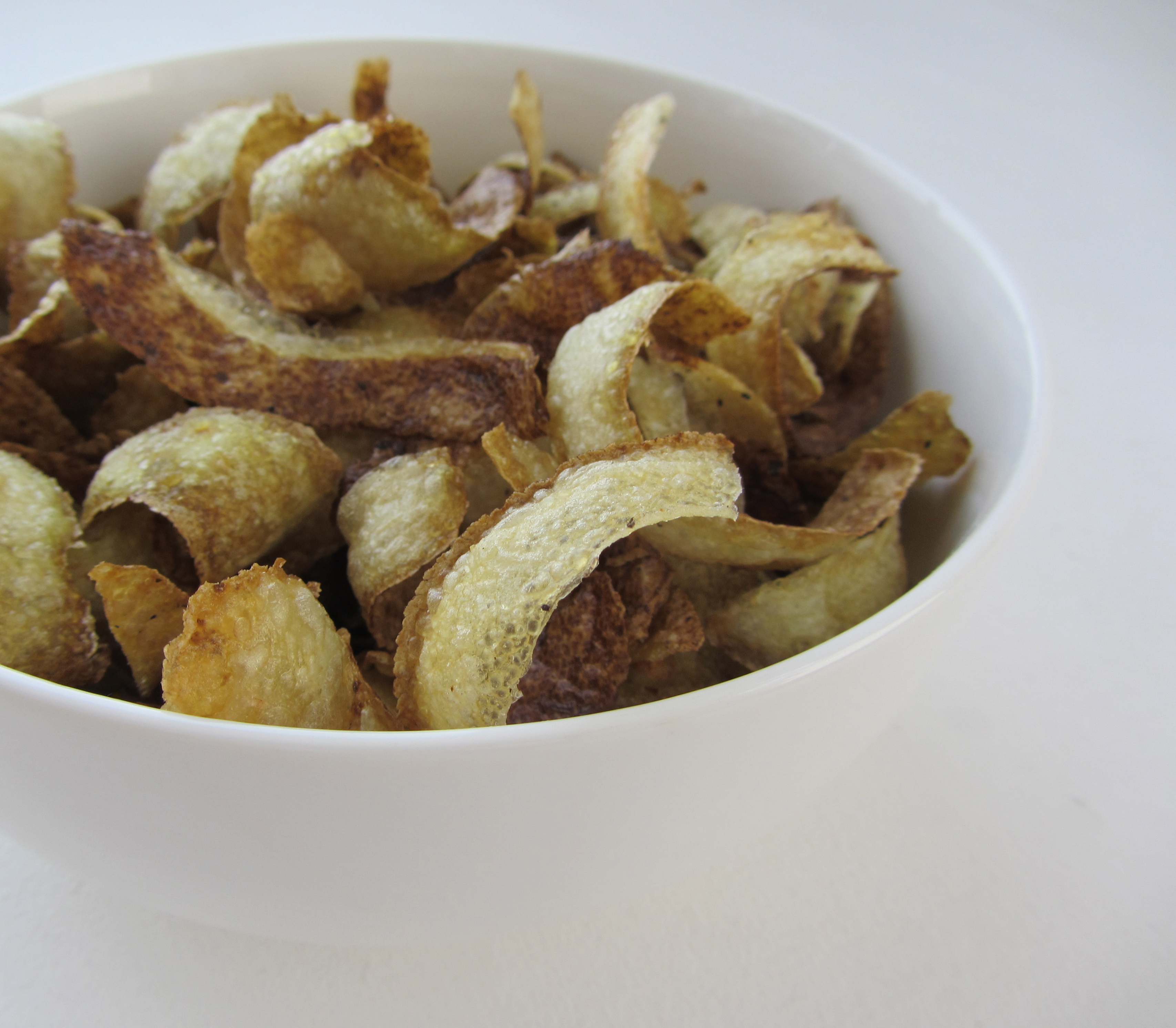 I eat a lot of potatoes. Every time I cook potatoes and go about peeling them I would say to myself that next time I really ought to fry the skins into chips. Of course that went on for years, but I finally kept my own promise and fried up a batch. The result? A nice little snack made from something I normally would toss into the compost bin. Now, I’m just kicking myself a little that I didn’t make them sooner!