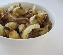 I eat a lot of potatoes. Every time I cook potatoes and go about peeling them I would say to myself that next time I really ought to fry the skins into chips. Of course that went on for years,